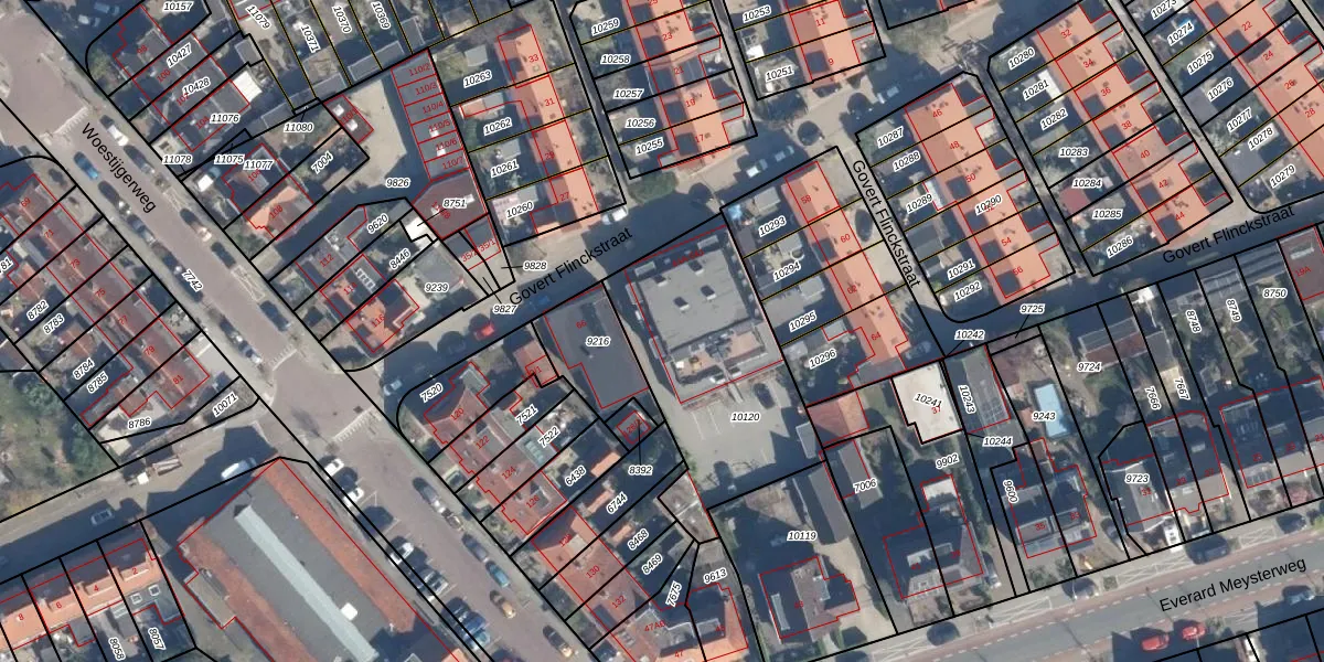 Het perceel waarop Govert Flinckstraat 64-E staat heeft een oppervlakte van 865 m². Dit is een groot perceel. De perceeloppervlakte wordt geregistreerd door het Kadaster. Gedetailleerde informatie over de maten van dit perceel kunt u vinden in het rapport Kadastrale kaart met maatvoering van Govert Flinckstraat 64-E.