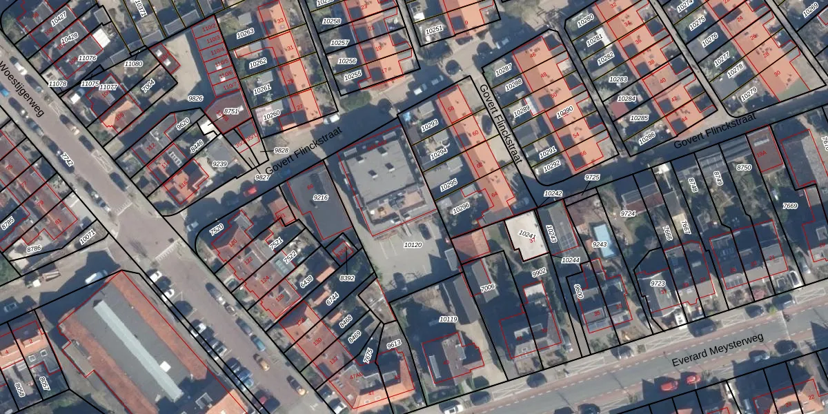 Het perceel waarop Govert Flinckstraat 64-G staat heeft een oppervlakte van 865 m². Dit is een groot perceel. De perceeloppervlakte wordt geregistreerd door het Kadaster. Gedetailleerde informatie over de maten van dit perceel kunt u vinden in het rapport Kadastrale kaart met maatvoering van Govert Flinckstraat 64-G.