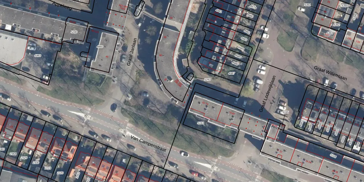 Het perceel waarop Graaf Janlaan 100 staat heeft een oppervlakte van 2690 m². Dit is een zeer groot perceel. De perceeloppervlakte wordt geregistreerd door het Kadaster. Gedetailleerde informatie over de maten van dit perceel kunt u vinden in het rapport Kadastrale kaart met maatvoering van Graaf Janlaan 100.