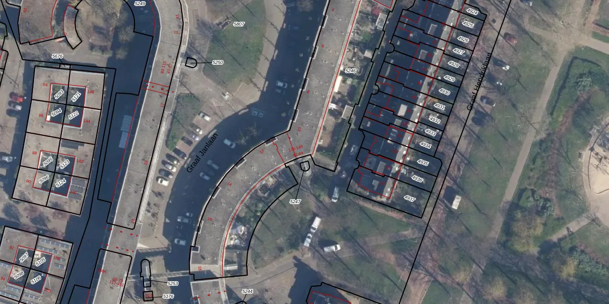 Het perceel waarop Graaf Janlaan 122 staat heeft een oppervlakte van 2070 m². Dit is een zeer groot perceel. De perceeloppervlakte wordt geregistreerd door het Kadaster. Gedetailleerde informatie over de maten van dit perceel kunt u vinden in het rapport Kadastrale kaart met maatvoering van Graaf Janlaan 122.