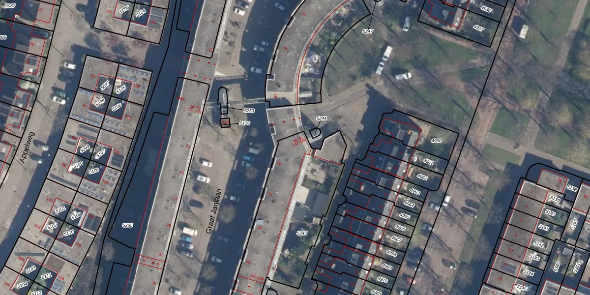 Graaf Janlaan 144 is gelegen op kadastraal perceel AMF00C5245. Deze kadastrale aanduiding is uniek en wordt gebruikt door het Kadaster om eigendomsrechten en andere zakelijke rechten vast te leggen. Het perceel maakt onderdeel uit van de kadastrale gemeente Amersfoort.