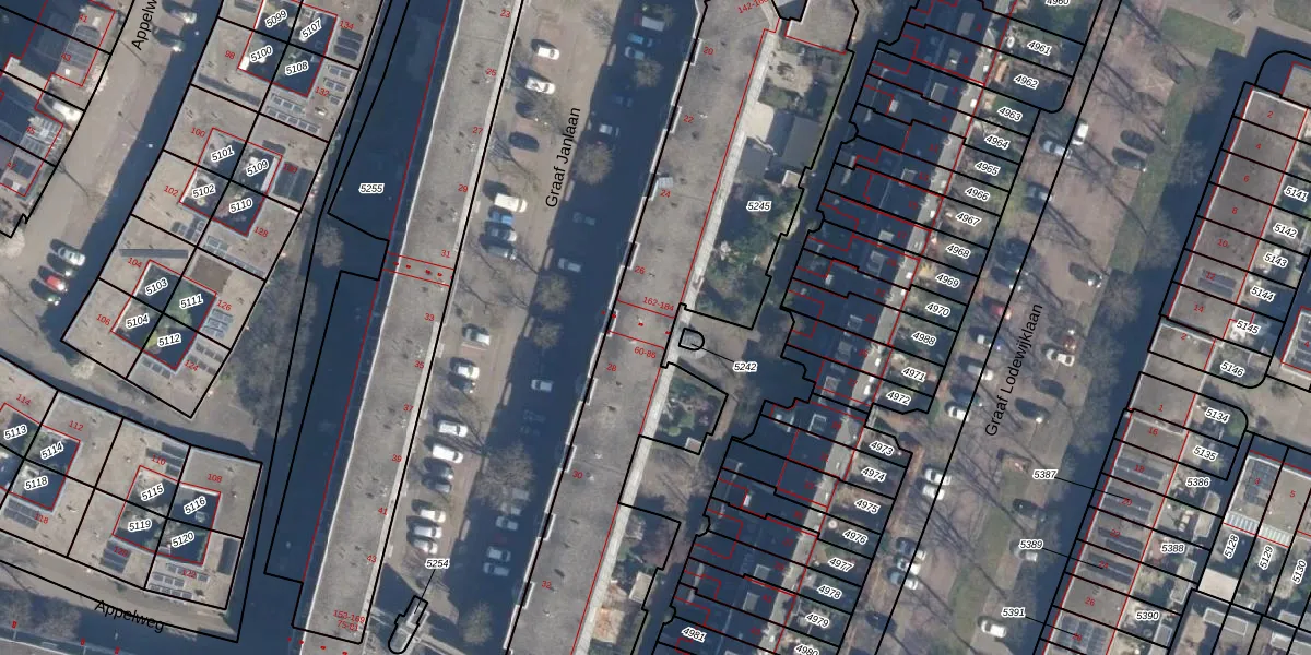 Het perceel waarop Graaf Janlaan 158 staat heeft een oppervlakte van 2690 m². Dit is een zeer groot perceel. De perceeloppervlakte wordt geregistreerd door het Kadaster. Gedetailleerde informatie over de maten van dit perceel kunt u vinden in het rapport Kadastrale kaart met maatvoering van Graaf Janlaan 158.
