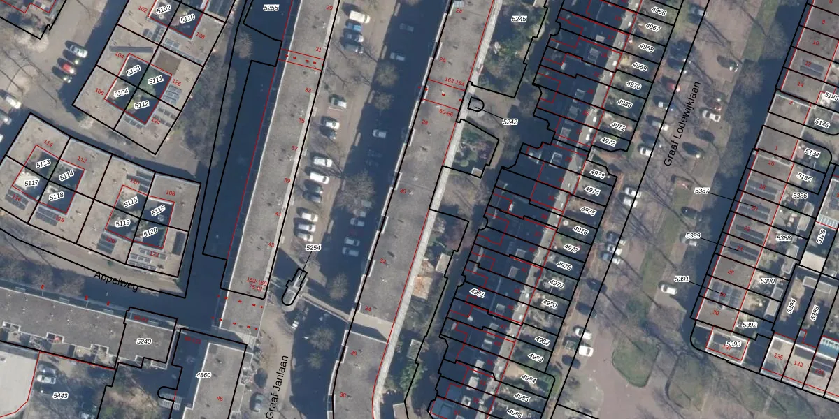 Het perceel waarop Graaf Janlaan 168 staat heeft een oppervlakte van 2690 m². Dit is een zeer groot perceel. De perceeloppervlakte wordt geregistreerd door het Kadaster. Gedetailleerde informatie over de maten van dit perceel kunt u vinden in het rapport Kadastrale kaart met maatvoering van Graaf Janlaan 168.