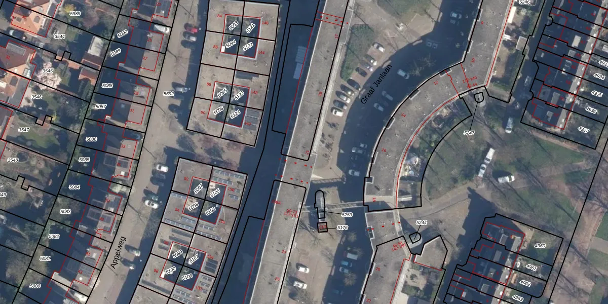 Het perceel waarop Graaf Janlaan 21 staat heeft een oppervlakte van 1955 m². Dit is een zeer groot perceel. De perceeloppervlakte wordt geregistreerd door het Kadaster. Gedetailleerde informatie over de maten van dit perceel kunt u vinden in het rapport Kadastrale kaart met maatvoering van Graaf Janlaan 21.