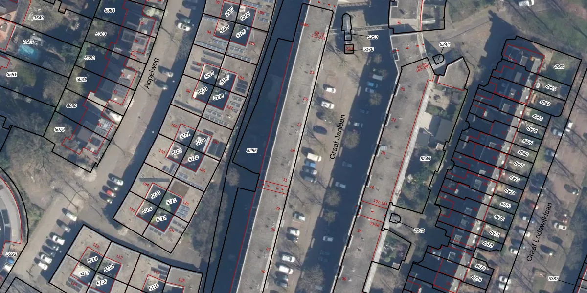 Het perceel waarop Graaf Janlaan 29 staat heeft een oppervlakte van 1925 m². Dit is een zeer groot perceel. De perceeloppervlakte wordt geregistreerd door het Kadaster. Gedetailleerde informatie over de maten van dit perceel kunt u vinden in het rapport Kadastrale kaart met maatvoering van Graaf Janlaan 29.