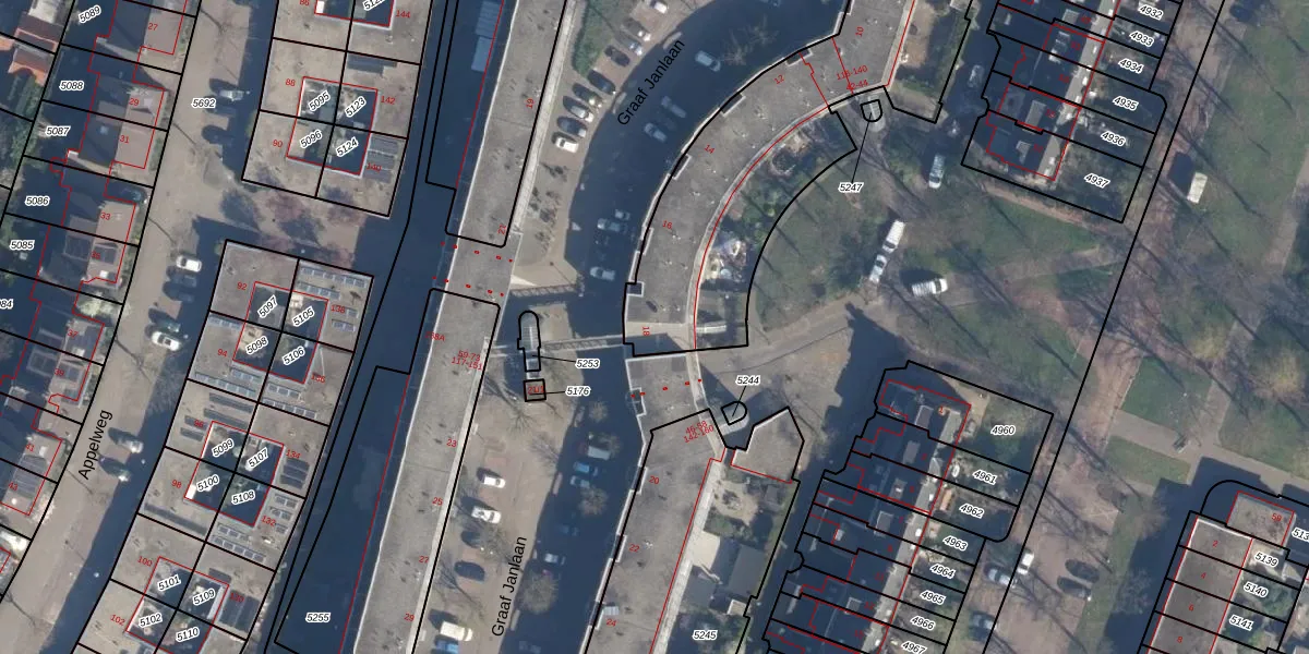 Graaf Janlaan 44 is gelegen op kadastraal perceel AMF00C5246. Deze kadastrale aanduiding is uniek en wordt gebruikt door het Kadaster om eigendomsrechten en andere zakelijke rechten vast te leggen. Het perceel maakt onderdeel uit van de kadastrale gemeente Amersfoort.