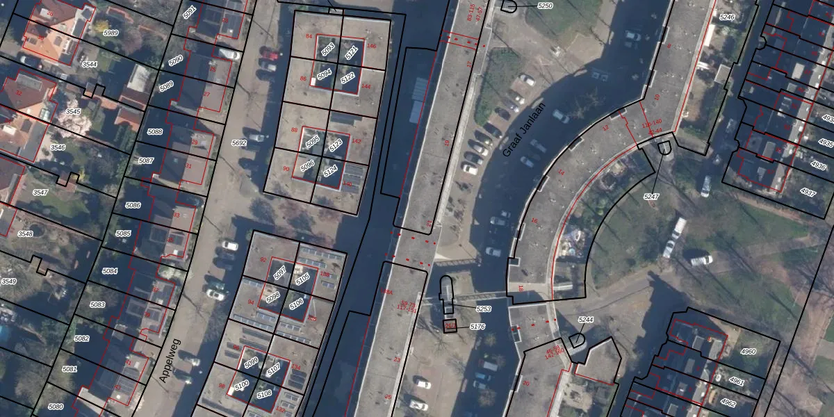 Het perceel waarop Graaf Janlaan 57 staat heeft een oppervlakte van 1955 m². Dit is een zeer groot perceel. De perceeloppervlakte wordt geregistreerd door het Kadaster. Gedetailleerde informatie over de maten van dit perceel kunt u vinden in het rapport Kadastrale kaart met maatvoering van Graaf Janlaan 57.