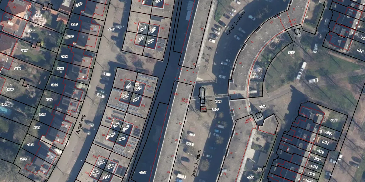 Graaf Janlaan 59 is gelegen op kadastraal perceel AMF00C5255. Deze kadastrale aanduiding is uniek en wordt gebruikt door het Kadaster om eigendomsrechten en andere zakelijke rechten vast te leggen. Het perceel maakt onderdeel uit van de kadastrale gemeente Amersfoort.