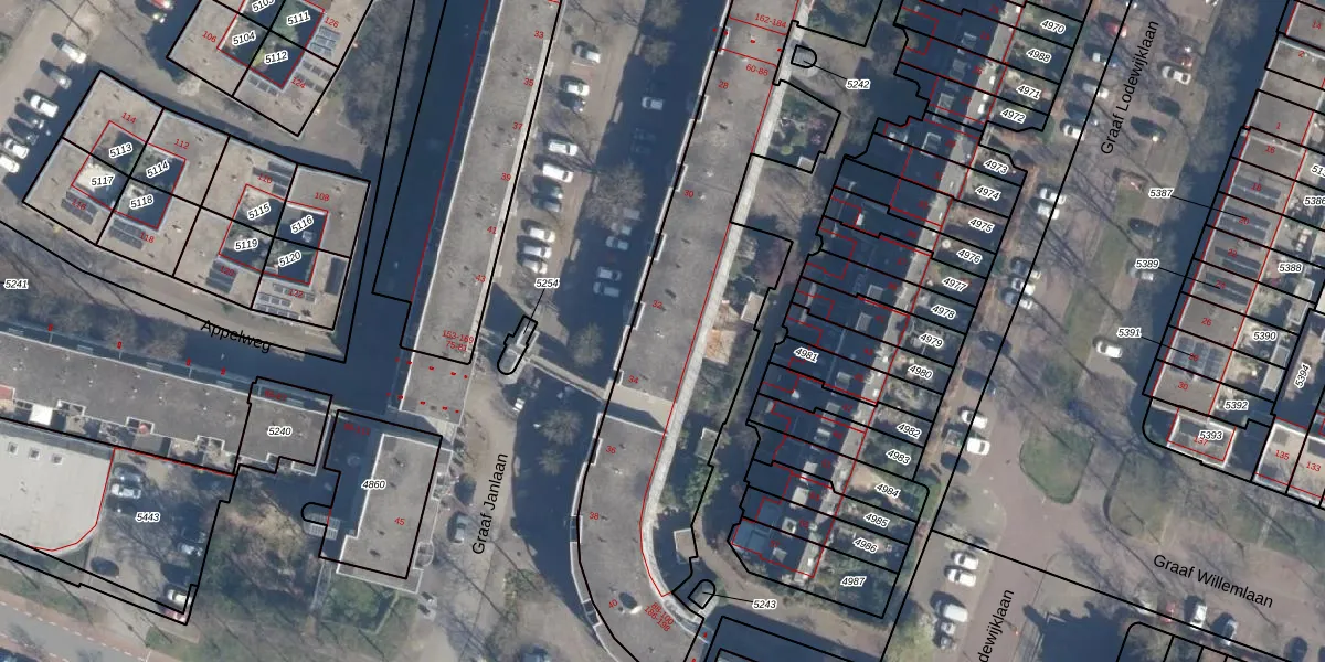 Het perceel waarop Graaf Janlaan 76 staat heeft een oppervlakte van 2690 m². Dit is een zeer groot perceel. De perceeloppervlakte wordt geregistreerd door het Kadaster. Gedetailleerde informatie over de maten van dit perceel kunt u vinden in het rapport Kadastrale kaart met maatvoering van Graaf Janlaan 76.