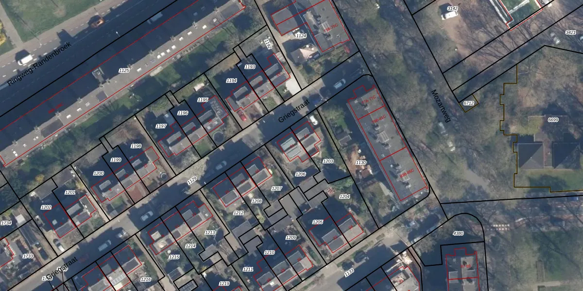 Griegstraat 21 is gelegen op kadastraal perceel AMF00G1206. Deze kadastrale aanduiding is uniek en wordt gebruikt door het Kadaster om eigendomsrechten en andere zakelijke rechten vast te leggen. Het perceel maakt onderdeel uit van de kadastrale gemeente Amersfoort.