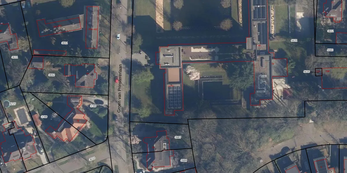 Het perceel waarop Groen van Prinstererlaan 35 staat heeft een oppervlakte van 9368 m². Dit is een zeer groot perceel. De perceeloppervlakte wordt geregistreerd door het Kadaster. Gedetailleerde informatie over de maten van dit perceel kunt u vinden in het rapport Kadastrale kaart met maatvoering van Groen van Prinstererlaan 35.