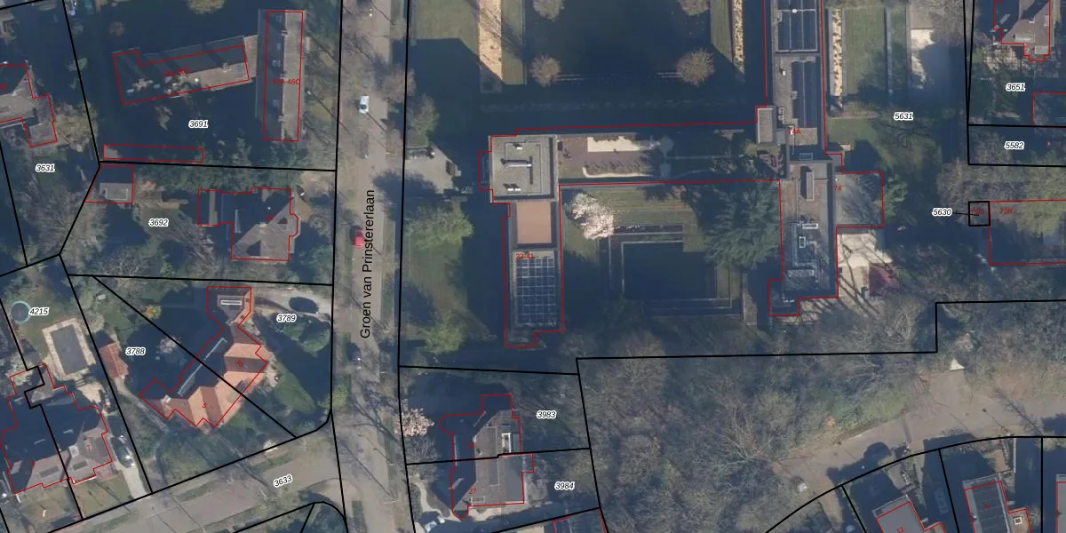 Het perceel waarop Groen van Prinstererlaan 37 staat heeft een oppervlakte van 9368 m². Dit is een zeer groot perceel. De perceeloppervlakte wordt geregistreerd door het Kadaster. Gedetailleerde informatie over de maten van dit perceel kunt u vinden in het rapport Kadastrale kaart met maatvoering van Groen van Prinstererlaan 37.