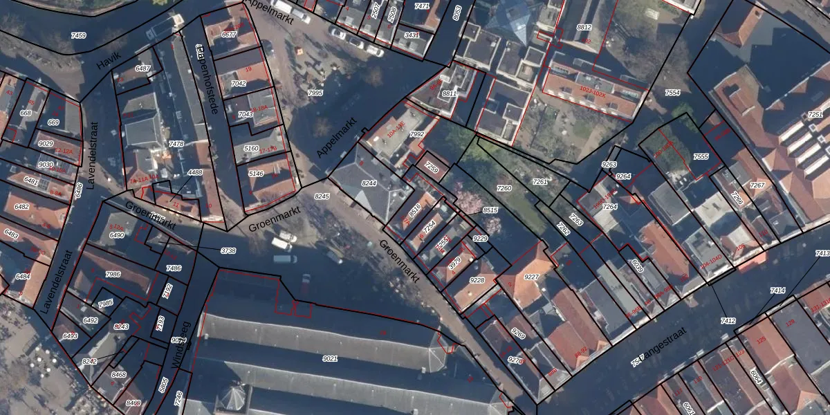 Het perceel waarop Groenmarkt 7-A staat heeft een oppervlakte van 128 m². Dit is een middelgroot perceel. De perceeloppervlakte wordt geregistreerd door het Kadaster. Gedetailleerde informatie over de maten van dit perceel kunt u vinden in het rapport Kadastrale kaart met maatvoering van Groenmarkt 7-A.