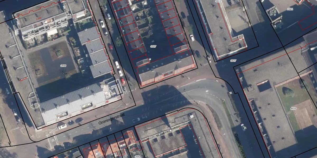Groningerstraat 12 is gelegen op kadastraal perceel AMF00H3597. Deze kadastrale aanduiding is uniek en wordt gebruikt door het Kadaster om eigendomsrechten en andere zakelijke rechten vast te leggen. Het perceel maakt onderdeel uit van de kadastrale gemeente Amersfoort.