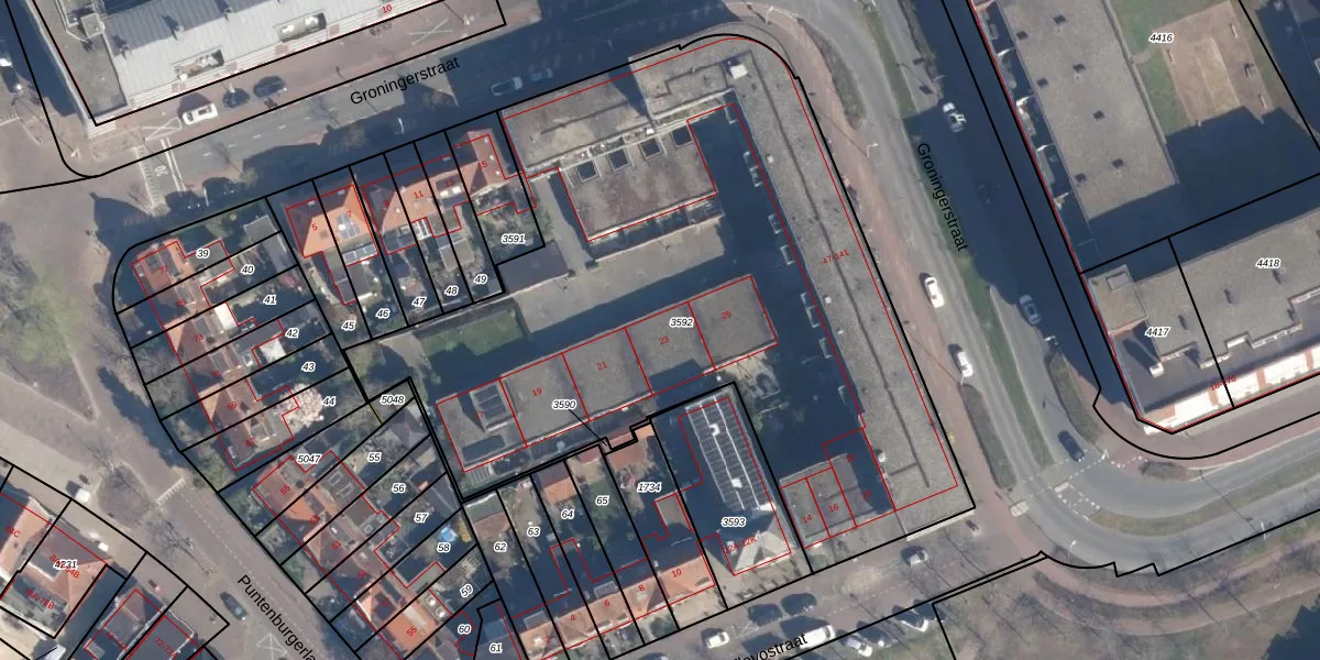 Het perceel waarop Groningerstraat 23 staat heeft een oppervlakte van 3885 m². Dit is een zeer groot perceel. De perceeloppervlakte wordt geregistreerd door het Kadaster. Gedetailleerde informatie over de maten van dit perceel kunt u vinden in het rapport Kadastrale kaart met maatvoering van Groningerstraat 23.