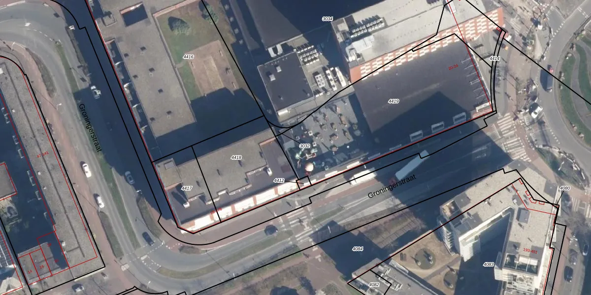 Groningerstraat 24 is gelegen op kadastraal perceel AMF00H4419. Deze kadastrale aanduiding is uniek en wordt gebruikt door het Kadaster om eigendomsrechten en andere zakelijke rechten vast te leggen. Het perceel maakt onderdeel uit van de kadastrale gemeente Amersfoort.