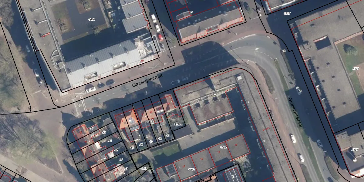 Het perceel waarop Groningerstraat 47 staat heeft een oppervlakte van 3885 m². Dit is een zeer groot perceel. De perceeloppervlakte wordt geregistreerd door het Kadaster. Gedetailleerde informatie over de maten van dit perceel kunt u vinden in het rapport Kadastrale kaart met maatvoering van Groningerstraat 47.