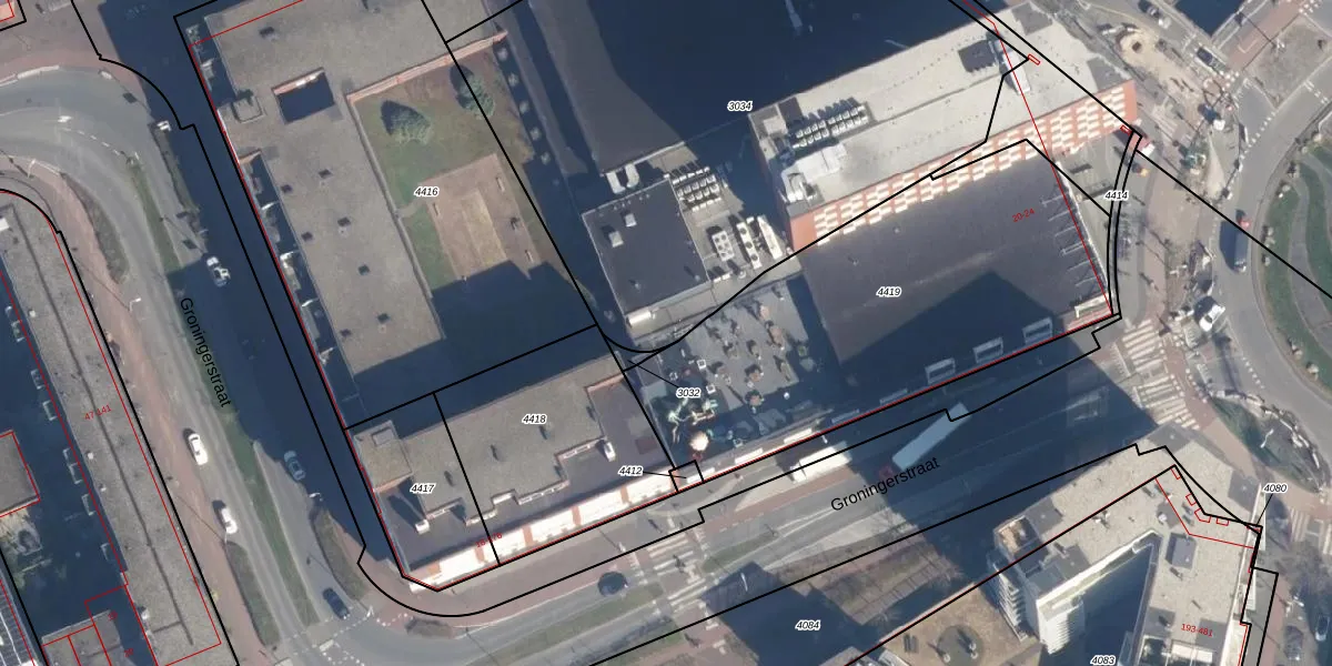 Het perceel waarop Groningerstraat 66 staat heeft een oppervlakte van 3565 m². Dit is een zeer groot perceel. De perceeloppervlakte wordt geregistreerd door het Kadaster. Gedetailleerde informatie over de maten van dit perceel kunt u vinden in het rapport Kadastrale kaart met maatvoering van Groningerstraat 66.