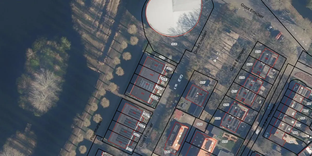 Gebruik de zoekbalk of klik op een perceel voor informatie over de adressen binnen dit perceel.
