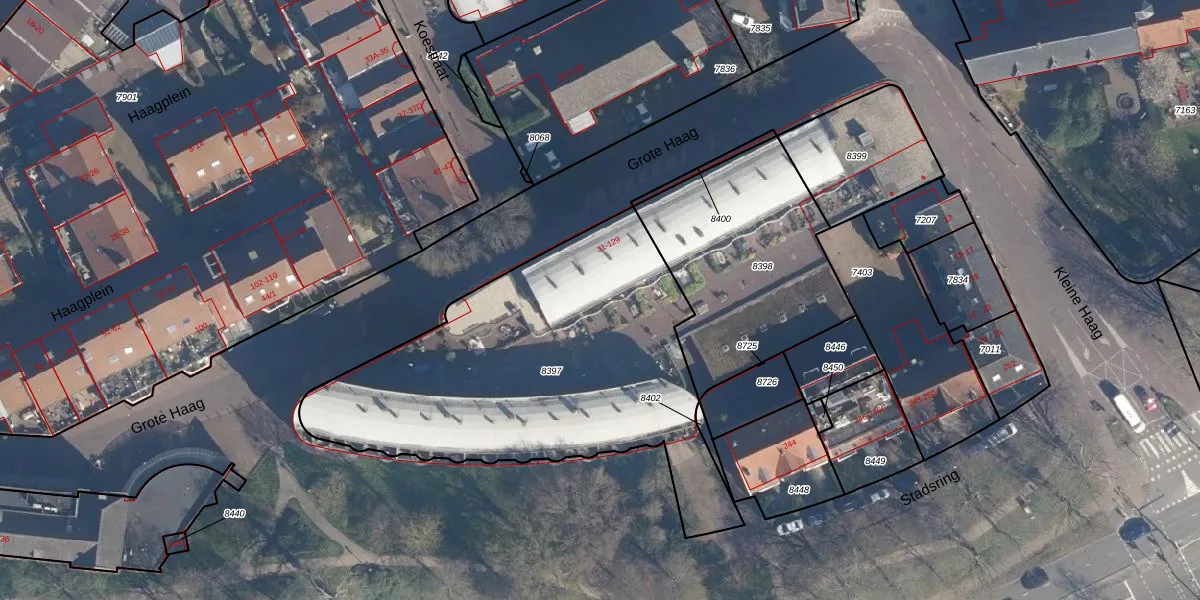 Het perceel waarop Grote Haag 119 staat heeft een oppervlakte van 1855 m². Dit is een zeer groot perceel. De perceeloppervlakte wordt geregistreerd door het Kadaster. Gedetailleerde informatie over de maten van dit perceel kunt u vinden in het rapport Kadastrale kaart met maatvoering van Grote Haag 119.