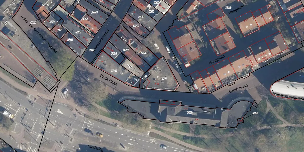 Grote Haag 16 is gelegen op kadastraal perceel AMF00E8082. Deze kadastrale aanduiding is uniek en wordt gebruikt door het Kadaster om eigendomsrechten en andere zakelijke rechten vast te leggen. Het perceel maakt onderdeel uit van de kadastrale gemeente Amersfoort.