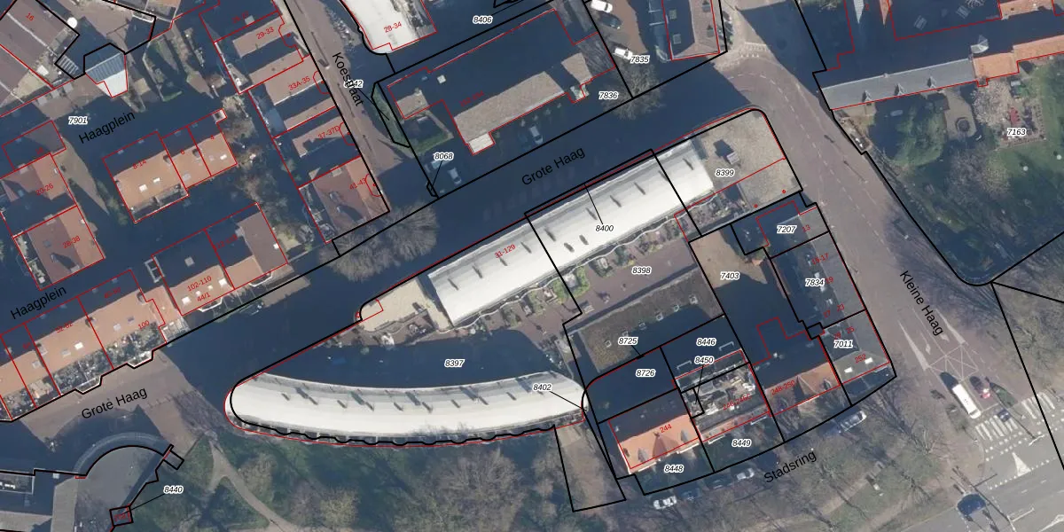 Het perceel waarop Grote Haag 47 staat heeft een oppervlakte van 1855 m². Dit is een zeer groot perceel. De perceeloppervlakte wordt geregistreerd door het Kadaster. Gedetailleerde informatie over de maten van dit perceel kunt u vinden in het rapport Kadastrale kaart met maatvoering van Grote Haag 47.