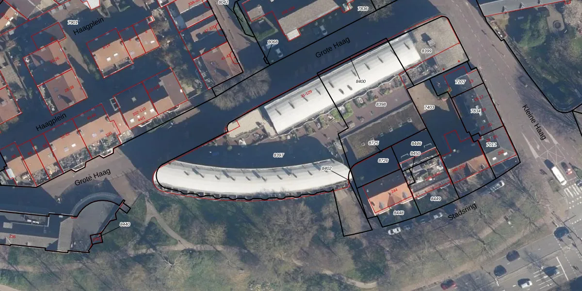 Het perceel waarop Grote Haag 71 staat heeft een oppervlakte van 1855 m². Dit is een zeer groot perceel. De perceeloppervlakte wordt geregistreerd door het Kadaster. Gedetailleerde informatie over de maten van dit perceel kunt u vinden in het rapport Kadastrale kaart met maatvoering van Grote Haag 71.