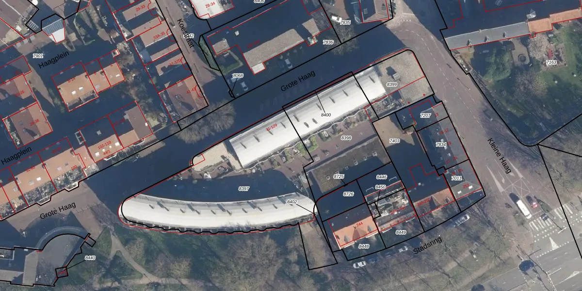 Het perceel waarop Grote Haag 79 staat heeft een oppervlakte van 1855 m². Dit is een zeer groot perceel. De perceeloppervlakte wordt geregistreerd door het Kadaster. Gedetailleerde informatie over de maten van dit perceel kunt u vinden in het rapport Kadastrale kaart met maatvoering van Grote Haag 79.