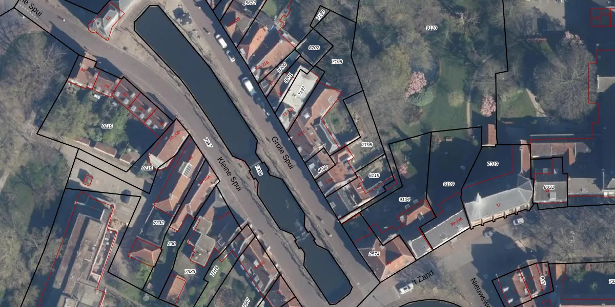 Grote Spui 9 is gelegen op kadastraal perceel AMF00E7198. Deze kadastrale aanduiding is uniek en wordt gebruikt door het Kadaster om eigendomsrechten en andere zakelijke rechten vast te leggen. Het perceel maakt onderdeel uit van de kadastrale gemeente Amersfoort.