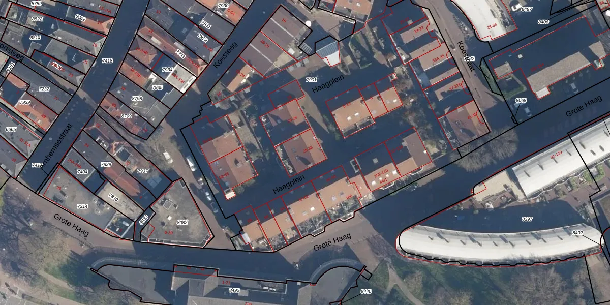 Het perceel waarop Haagplein 38 staat heeft een oppervlakte van 5428 m². Dit is een zeer groot perceel. De perceeloppervlakte wordt geregistreerd door het Kadaster. Gedetailleerde informatie over de maten van dit perceel kunt u vinden in het rapport Kadastrale kaart met maatvoering van Haagplein 38.