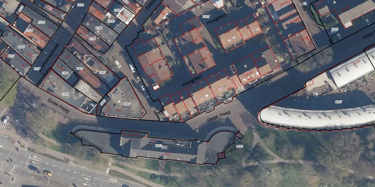 Het perceel waarop Haagplein 64 staat heeft een oppervlakte van 5428 m². Dit is een zeer groot perceel. De perceeloppervlakte wordt geregistreerd door het Kadaster. Gedetailleerde informatie over de maten van dit perceel kunt u vinden in het rapport Kadastrale kaart met maatvoering van Haagplein 64.