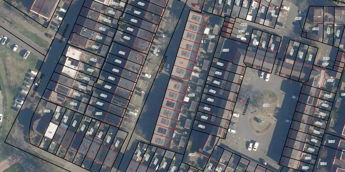 Het perceel waarop Haasdonk 14 staat heeft een oppervlakte van 1728 m². Dit is een zeer groot perceel. De perceeloppervlakte wordt geregistreerd door het Kadaster. Gedetailleerde informatie over de maten van dit perceel kunt u vinden in het rapport Kadastrale kaart met maatvoering van Haasdonk 14.