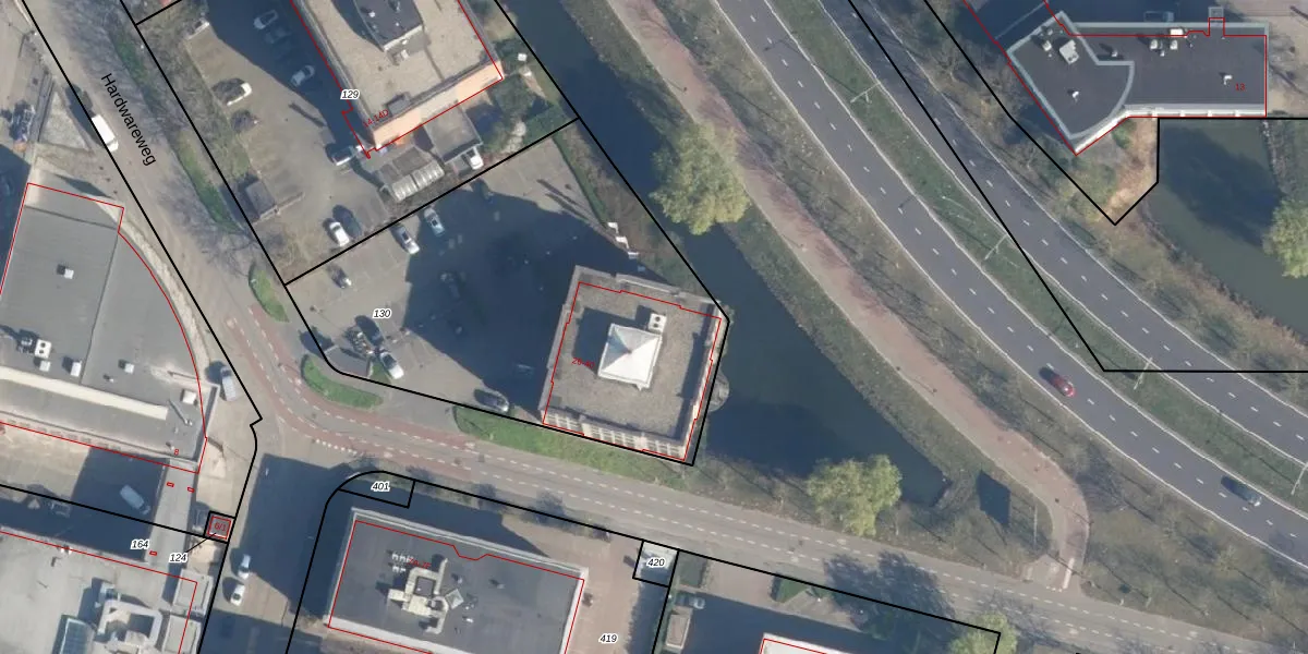 Het perceel waarop Hardwareweg 38 staat heeft een oppervlakte van 2055 m². Dit is een zeer groot perceel. De perceeloppervlakte wordt geregistreerd door het Kadaster. Gedetailleerde informatie over de maten van dit perceel kunt u vinden in het rapport Kadastrale kaart met maatvoering van Hardwareweg 38.
