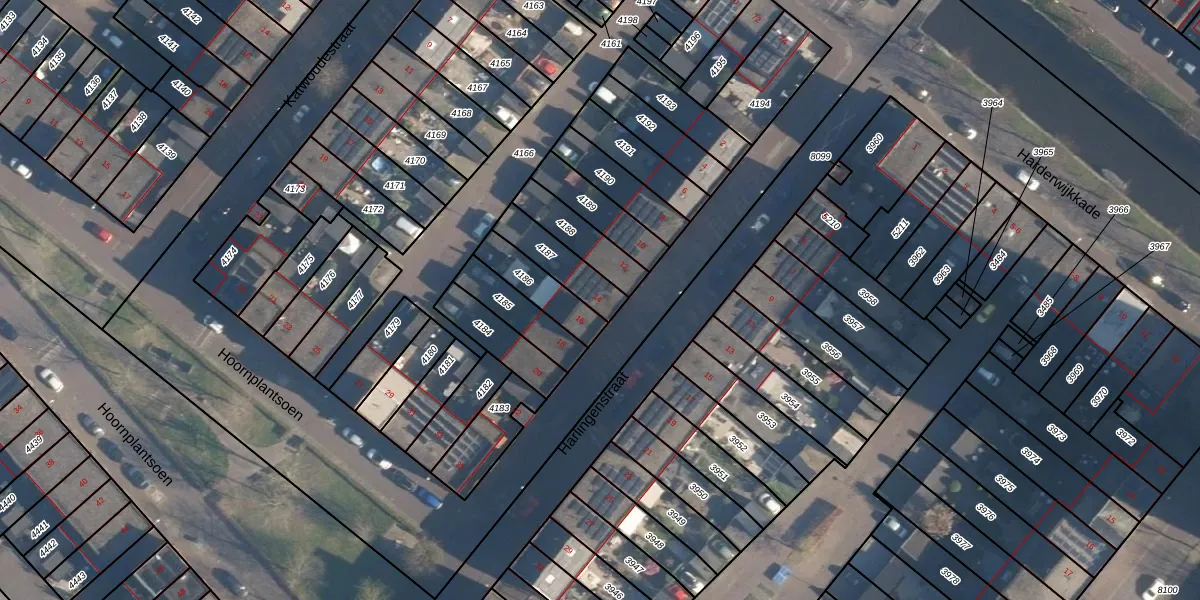 Harlingenstraat 14 is gelegen op kadastraal perceel HLD02B4187. Deze kadastrale aanduiding is uniek en wordt gebruikt door het Kadaster om eigendomsrechten en andere zakelijke rechten vast te leggen. Het perceel maakt onderdeel uit van de kadastrale gemeente Hoogland.