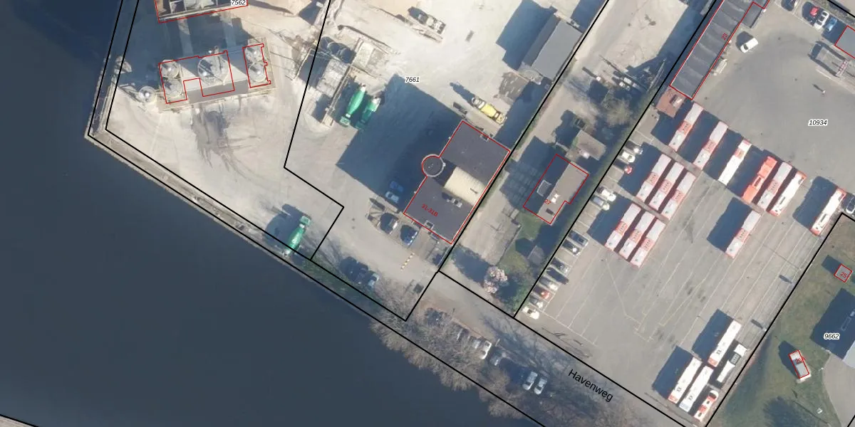 Het perceel waarop Havenweg 31 staat heeft een oppervlakte van 4365 m². Dit is een zeer groot perceel. De perceeloppervlakte wordt geregistreerd door het Kadaster. Gedetailleerde informatie over de maten van dit perceel kunt u vinden in het rapport Kadastrale kaart met maatvoering van Havenweg 31.