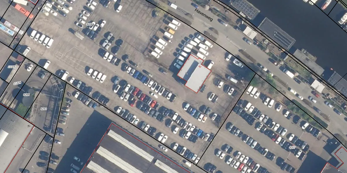 Het perceel waarop Havenweg 52-D staat heeft een oppervlakte van 8038 m². Dit is een zeer groot perceel. De perceeloppervlakte wordt geregistreerd door het Kadaster. Gedetailleerde informatie over de maten van dit perceel kunt u vinden in het rapport Kadastrale kaart met maatvoering van Havenweg 52-D.