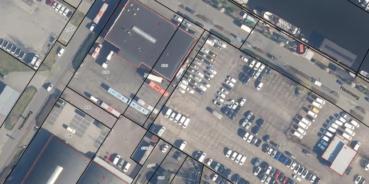 Het perceel waarop Havenweg 56-D staat heeft een oppervlakte van 8038 m². Dit is een zeer groot perceel. De perceeloppervlakte wordt geregistreerd door het Kadaster. Gedetailleerde informatie over de maten van dit perceel kunt u vinden in het rapport Kadastrale kaart met maatvoering van Havenweg 56-D.