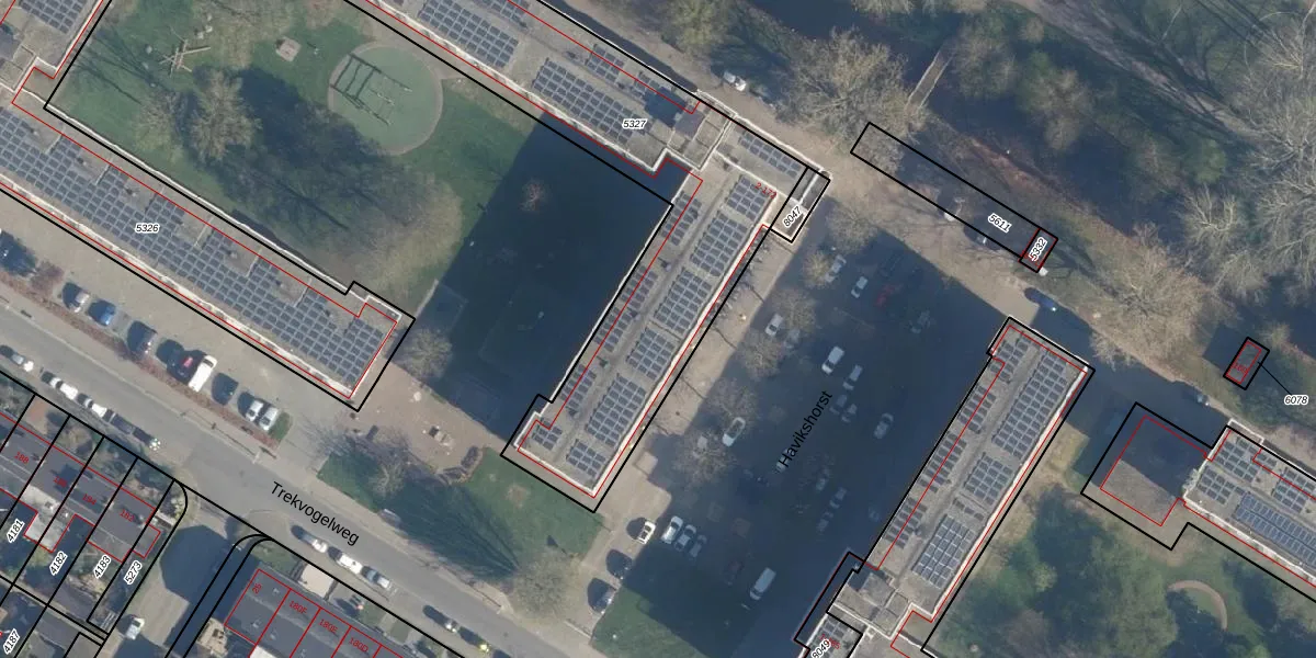 Het perceel waarop Havikshorst 100 staat heeft een oppervlakte van 1974 m². Dit is een zeer groot perceel. De perceeloppervlakte wordt geregistreerd door het Kadaster. Gedetailleerde informatie over de maten van dit perceel kunt u vinden in het rapport Kadastrale kaart met maatvoering van Havikshorst 100.