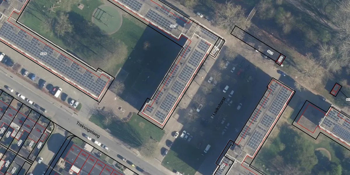 Het perceel waarop Havikshorst 90 staat heeft een oppervlakte van 1974 m². Dit is een zeer groot perceel. De perceeloppervlakte wordt geregistreerd door het Kadaster. Gedetailleerde informatie over de maten van dit perceel kunt u vinden in het rapport Kadastrale kaart met maatvoering van Havikshorst 90.