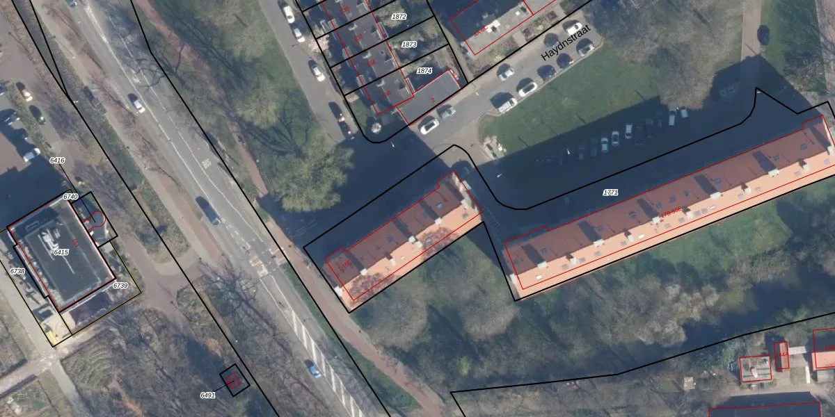 Het perceel waarop Haydnstraat 15-B staat heeft een oppervlakte van 2605 m². Dit is een zeer groot perceel. De perceeloppervlakte wordt geregistreerd door het Kadaster. Gedetailleerde informatie over de maten van dit perceel kunt u vinden in het rapport Kadastrale kaart met maatvoering van Haydnstraat 15-B.