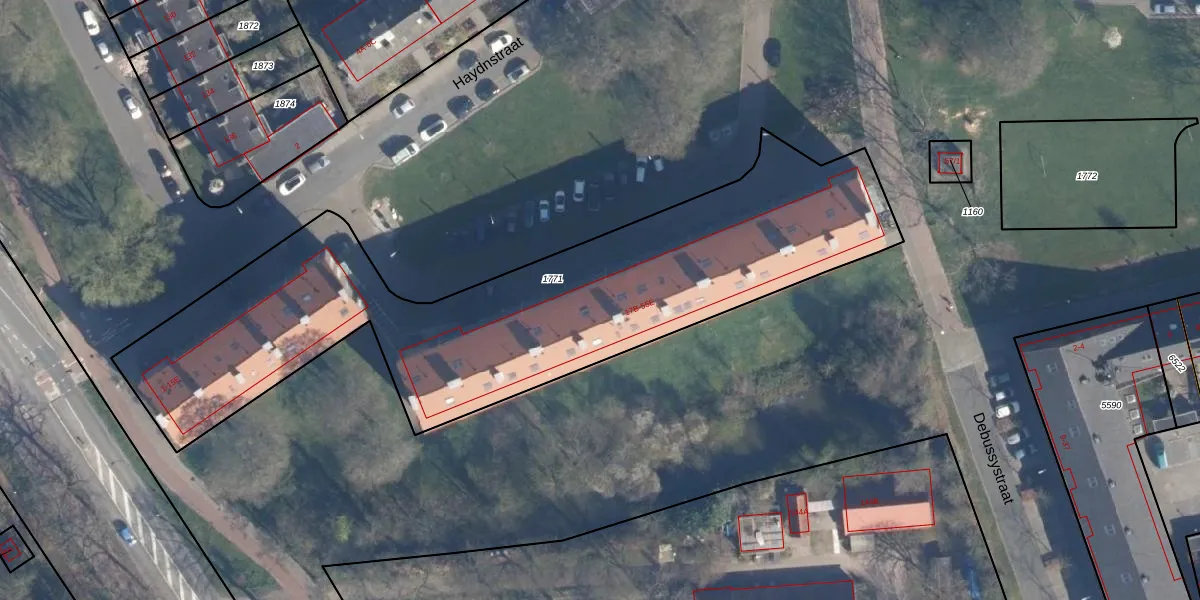 Het perceel waarop Haydnstraat 17-D staat heeft een oppervlakte van 2605 m². Dit is een zeer groot perceel. De perceeloppervlakte wordt geregistreerd door het Kadaster. Gedetailleerde informatie over de maten van dit perceel kunt u vinden in het rapport Kadastrale kaart met maatvoering van Haydnstraat 17-D.