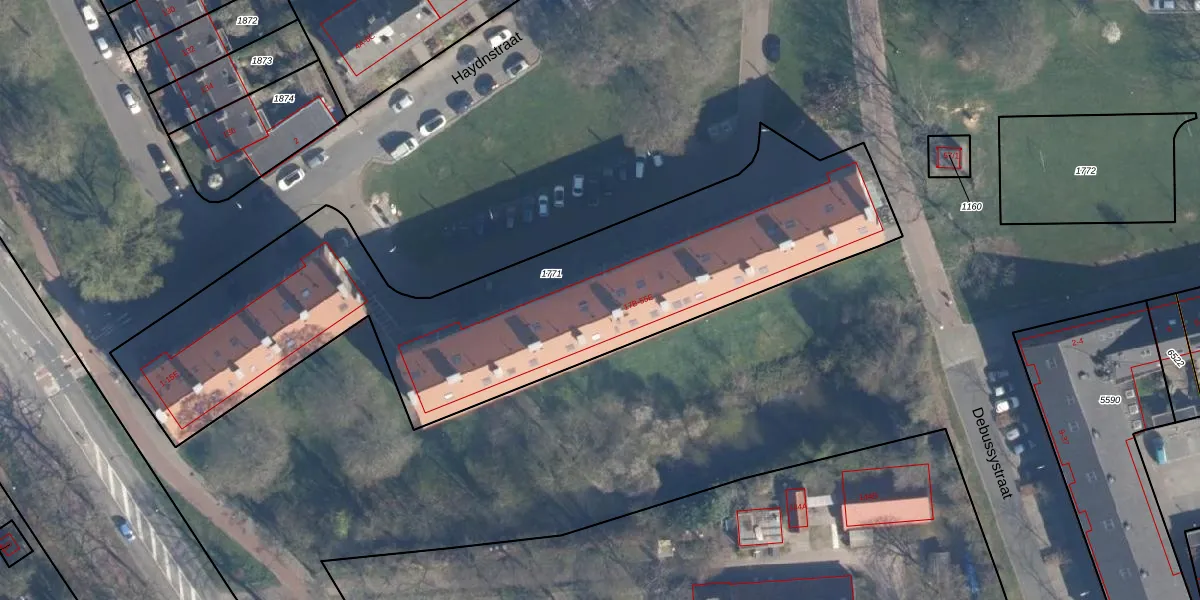Het perceel waarop Haydnstraat 17-E staat heeft een oppervlakte van 2605 m². Dit is een zeer groot perceel. De perceeloppervlakte wordt geregistreerd door het Kadaster. Gedetailleerde informatie over de maten van dit perceel kunt u vinden in het rapport Kadastrale kaart met maatvoering van Haydnstraat 17-E.