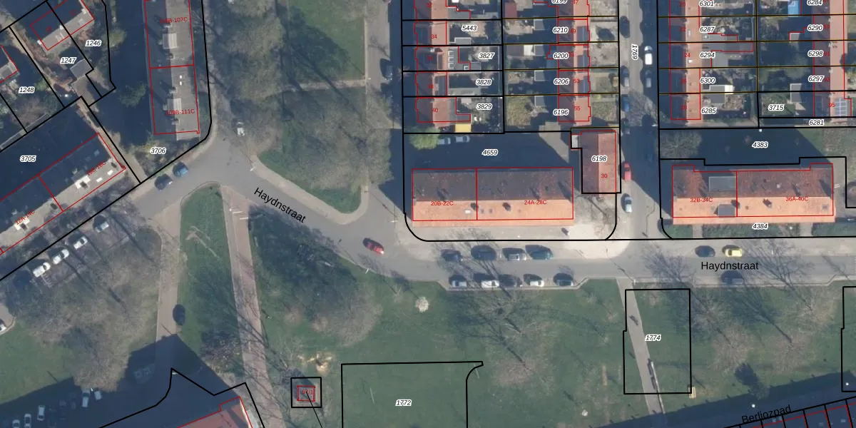 Het perceel waarop Haydnstraat 20-B staat heeft een oppervlakte van 1115 m². Dit is een zeer groot perceel. De perceeloppervlakte wordt geregistreerd door het Kadaster. Gedetailleerde informatie over de maten van dit perceel kunt u vinden in het rapport Kadastrale kaart met maatvoering van Haydnstraat 20-B.