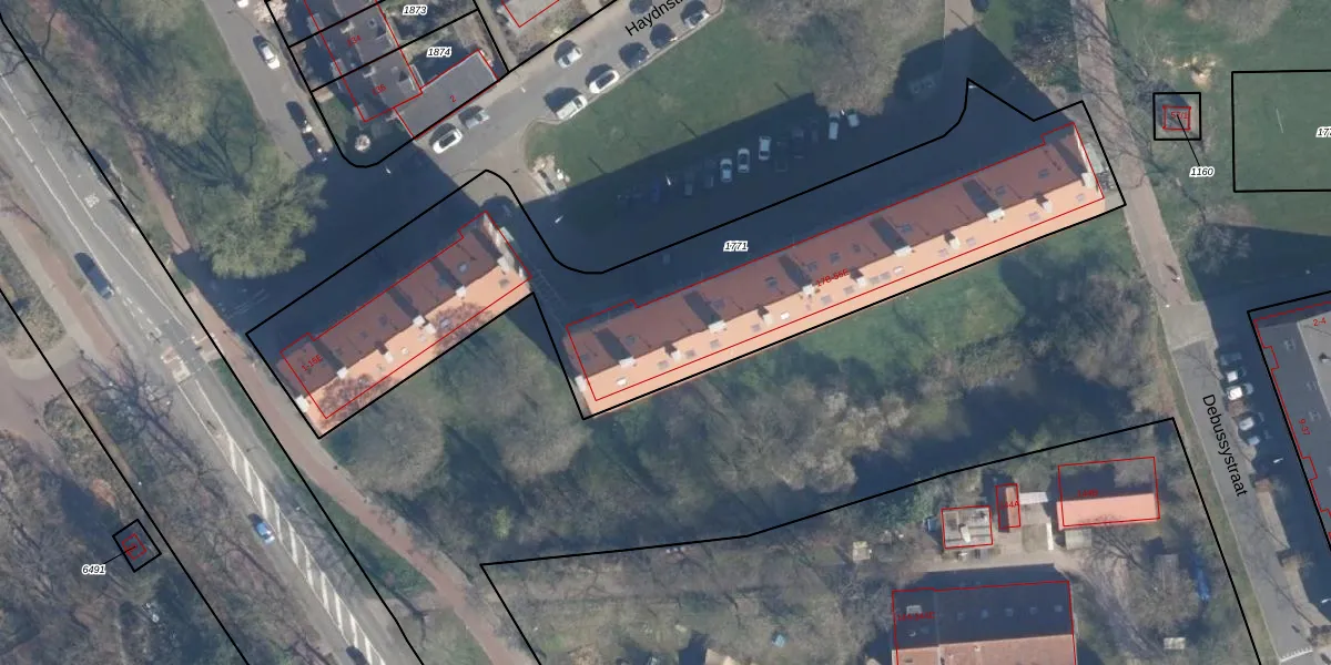 Het perceel waarop Haydnstraat 25 staat heeft een oppervlakte van 2605 m². Dit is een zeer groot perceel. De perceeloppervlakte wordt geregistreerd door het Kadaster. Gedetailleerde informatie over de maten van dit perceel kunt u vinden in het rapport Kadastrale kaart met maatvoering van Haydnstraat 25.