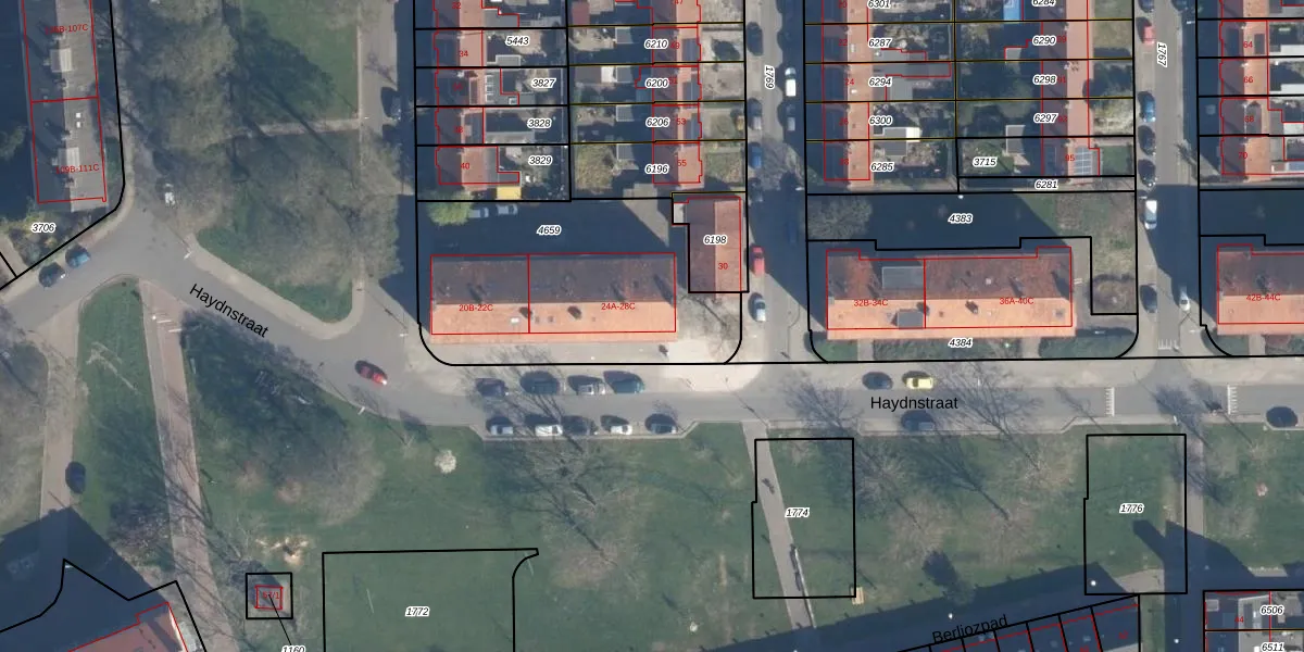 Het perceel waarop Haydnstraat 28-B staat heeft een oppervlakte van 1115 m². Dit is een zeer groot perceel. De perceeloppervlakte wordt geregistreerd door het Kadaster. Gedetailleerde informatie over de maten van dit perceel kunt u vinden in het rapport Kadastrale kaart met maatvoering van Haydnstraat 28-B.