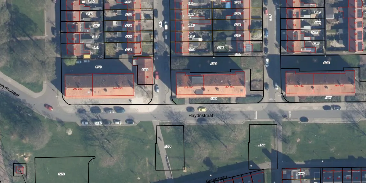 Het perceel waarop Haydnstraat 32-B staat heeft een oppervlakte van 815 m². Dit is een groot perceel. De perceeloppervlakte wordt geregistreerd door het Kadaster. Gedetailleerde informatie over de maten van dit perceel kunt u vinden in het rapport Kadastrale kaart met maatvoering van Haydnstraat 32-B.