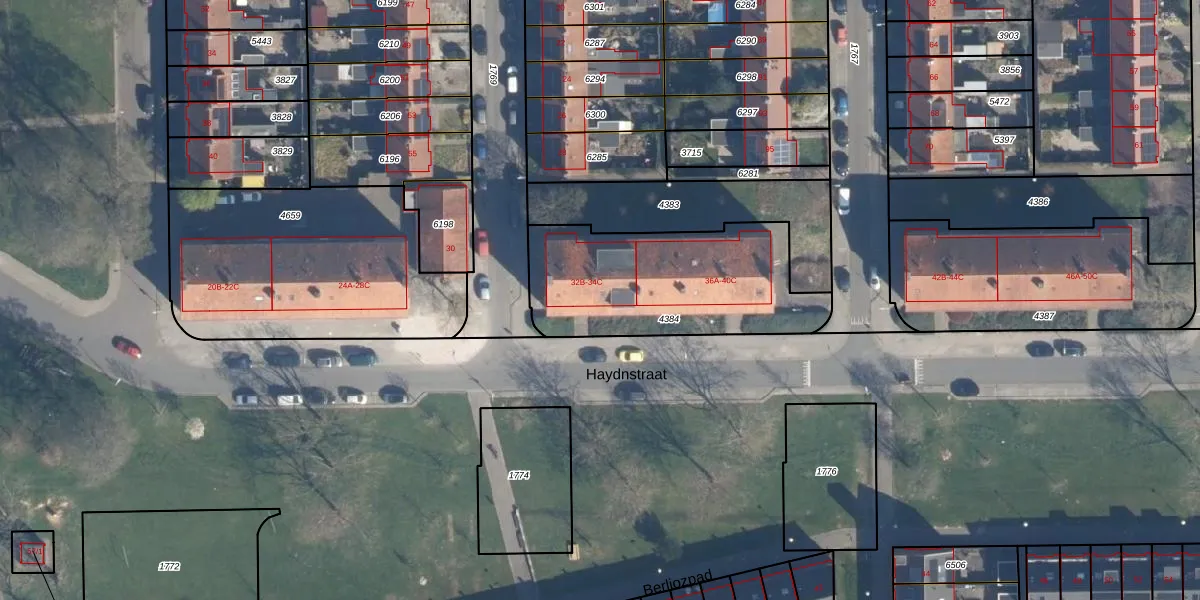 Haydnstraat 34-A is gelegen op kadastraal perceel AMF00G4384. Deze kadastrale aanduiding is uniek en wordt gebruikt door het Kadaster om eigendomsrechten en andere zakelijke rechten vast te leggen. Het perceel maakt onderdeel uit van de kadastrale gemeente Amersfoort.