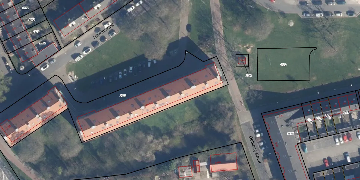 Haydnstraat 45 is gelegen op kadastraal perceel AMF00G1771. Deze kadastrale aanduiding is uniek en wordt gebruikt door het Kadaster om eigendomsrechten en andere zakelijke rechten vast te leggen. Het perceel maakt onderdeel uit van de kadastrale gemeente Amersfoort.