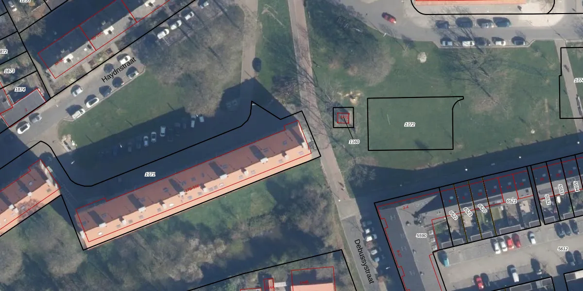 Haydnstraat 53 is gelegen op kadastraal perceel AMF00G1771. Deze kadastrale aanduiding is uniek en wordt gebruikt door het Kadaster om eigendomsrechten en andere zakelijke rechten vast te leggen. Het perceel maakt onderdeel uit van de kadastrale gemeente Amersfoort.