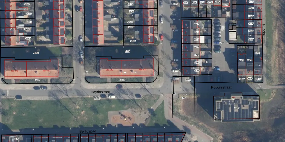 Het perceel waarop Haydnstraat 58-B staat heeft een oppervlakte van 825 m². Dit is een groot perceel. De perceeloppervlakte wordt geregistreerd door het Kadaster. Gedetailleerde informatie over de maten van dit perceel kunt u vinden in het rapport Kadastrale kaart met maatvoering van Haydnstraat 58-B.